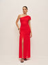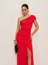 Şık Drapeli Tek Omuz Yırtmaç Abiye Elbise