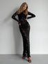 Yarı Şeffaf Dantel Uzun Elbise