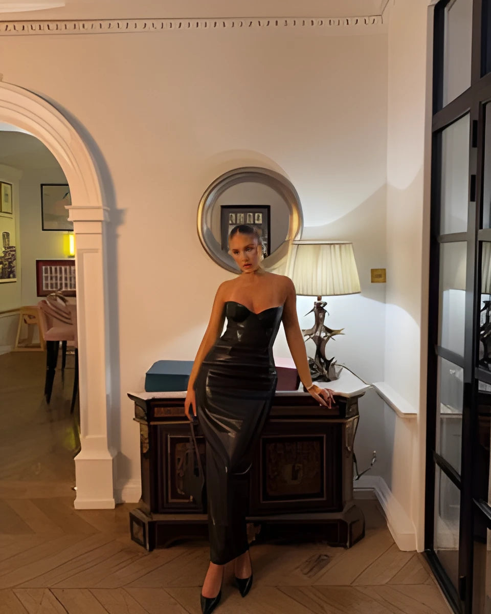 Bu elbise, özel günler ve davetlerde zarafetle öne çıkmak isteyenler için ideal bir seçim sunar. 🤍