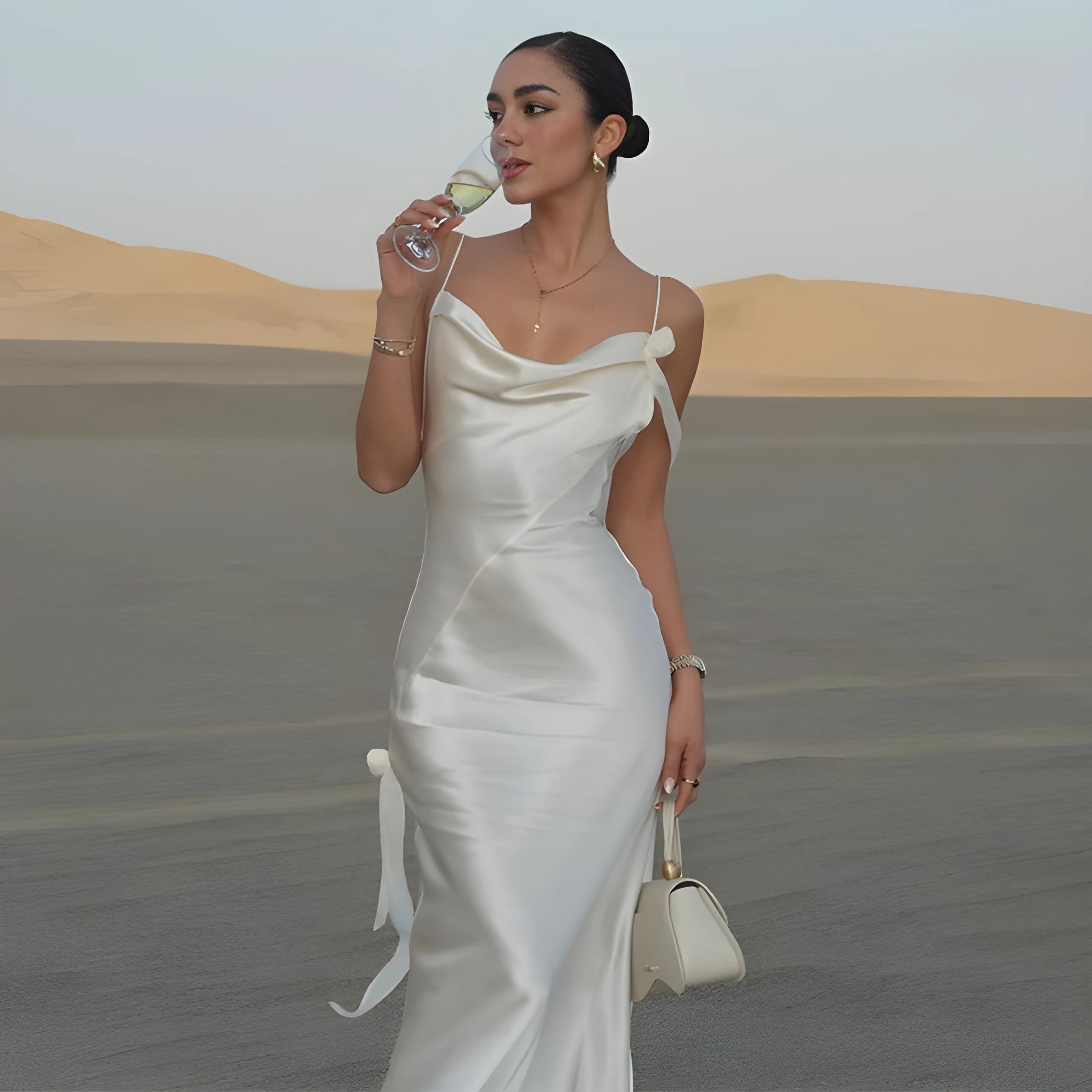Bu elbise, özel günler ve davetlerde zarafetle öne çıkmak isteyenler için ideal bir seçim sunar. 🤍