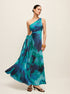 Şık Tek Omuz Fırfırlı Abiye Elbise, Şık Yan Açıklıkları ile