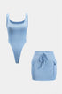 Kolsuz Bodysuit ve Bağlamalı Cep Etek Seti