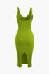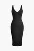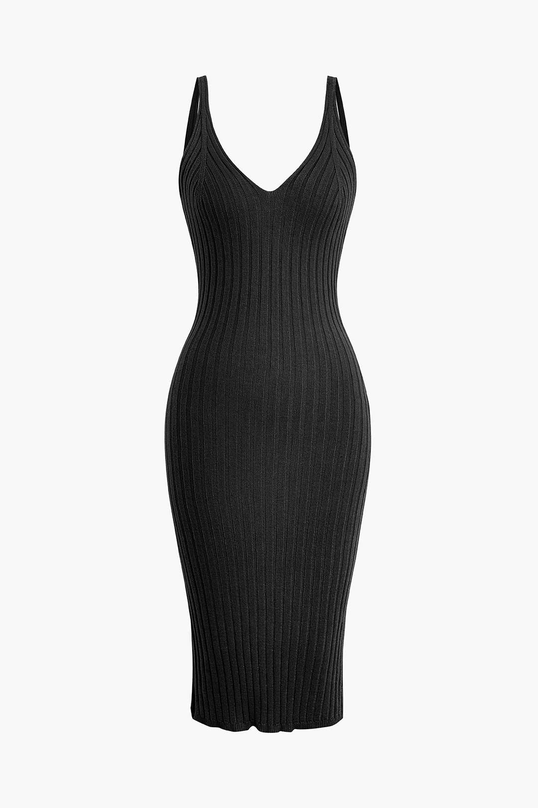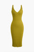 Kolsuz V Yaka Triko Midi Elbise