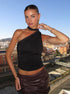 Düz Asimetrik Yaka Tek Omuzlu Üst