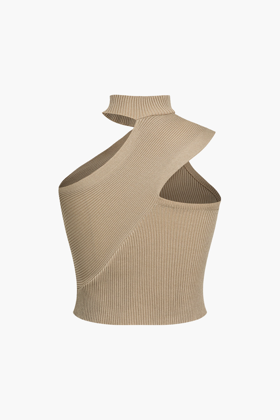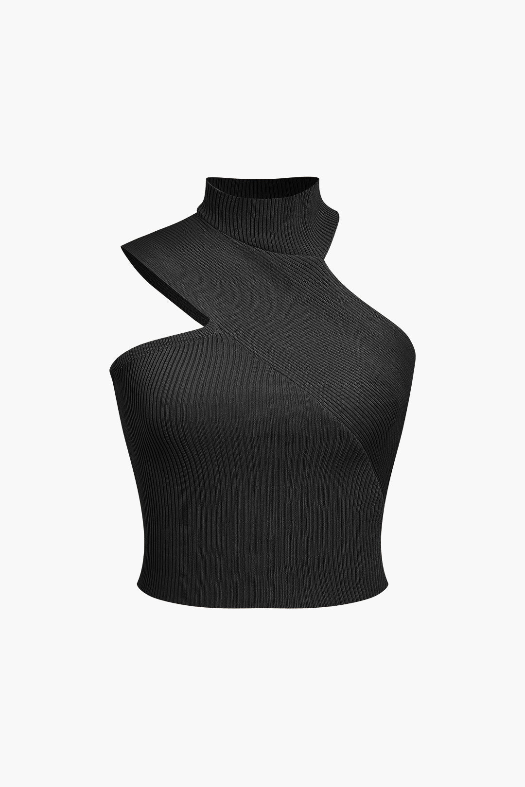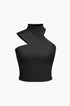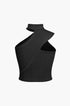 Düz Örgü Asimetrik Yüksek Yaka Kolsuz Üst