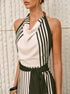 Şık Çizgili Halter Fermuarlı Abiye Elbise, Büzgülü Yaka Tasarımı ile