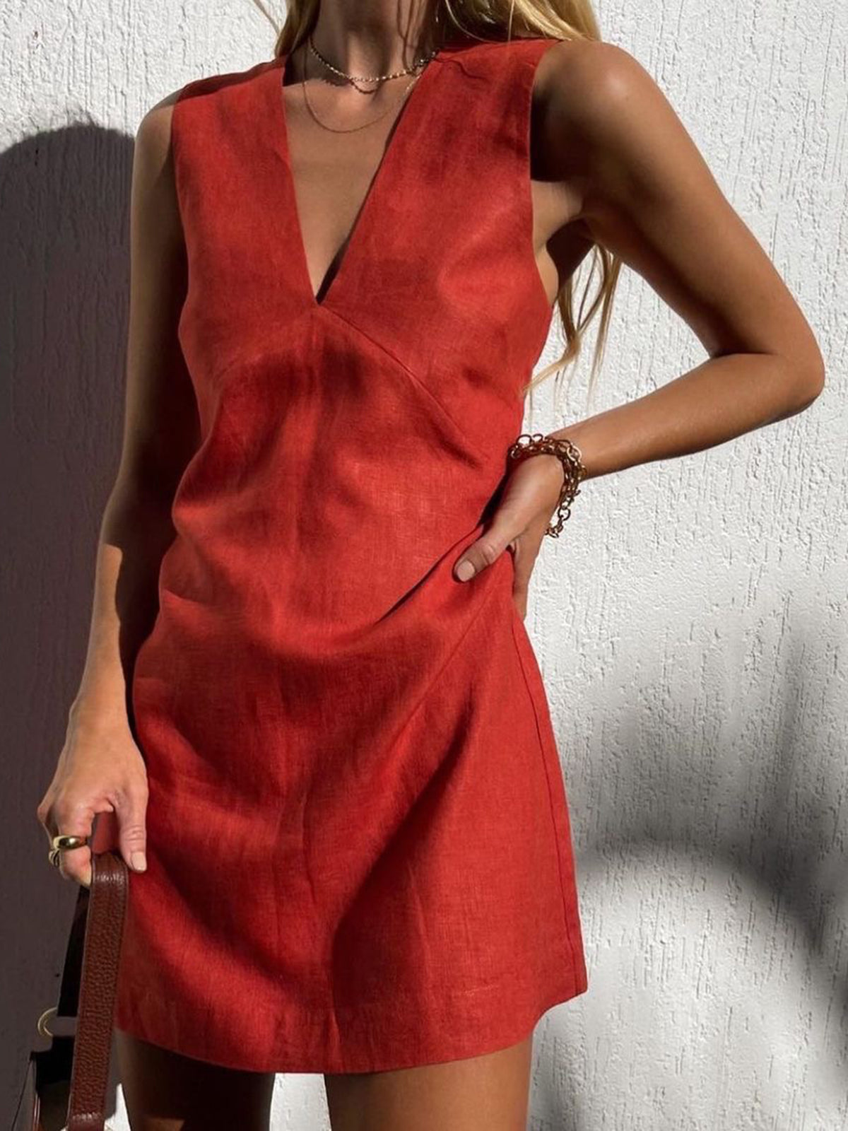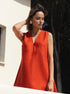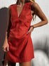 Syra Keten V Yaka Kısa Elbise Günlük Stil