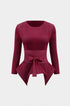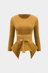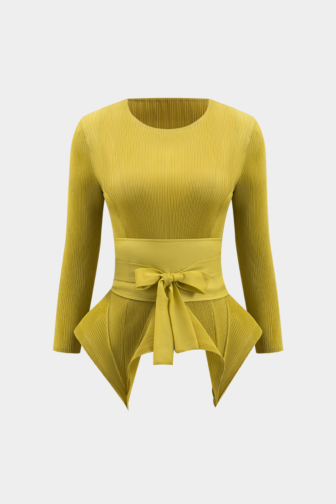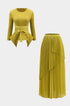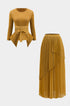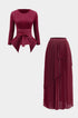 Bağcıklı Uzun Kol Bluz ve Piliseli Etek Seti