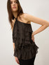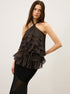 3D Çiçekli Katmanlı Fırfır Şifon Halter Üst