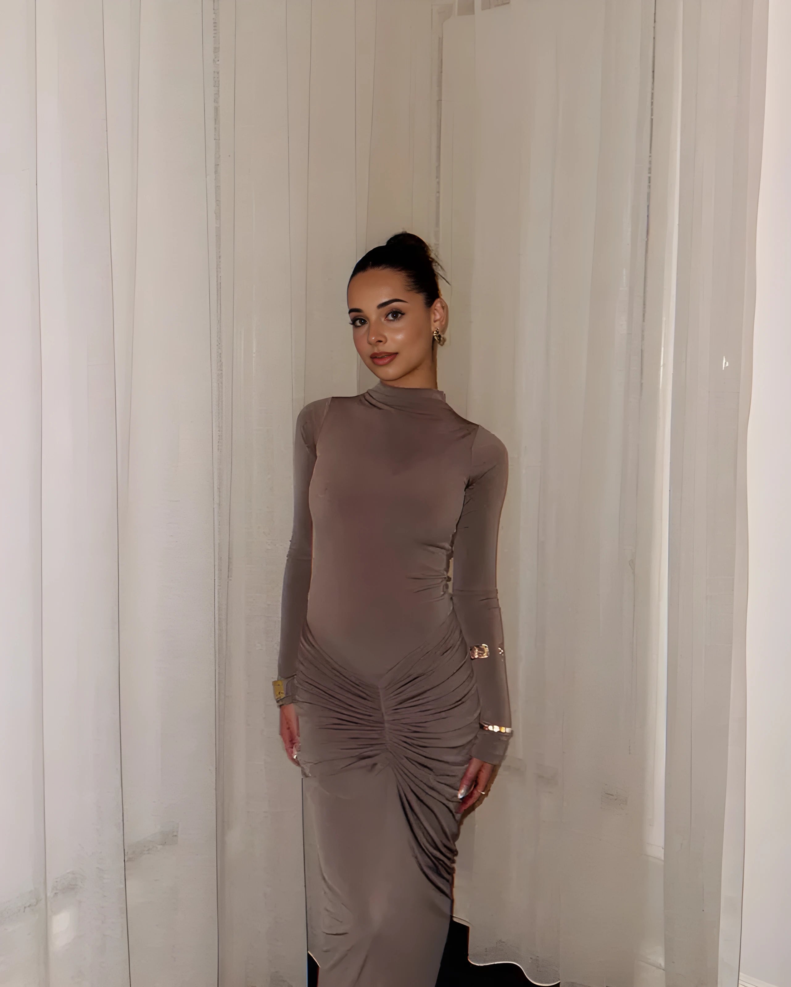 Bu elbise, özel günler ve davetlerde zarafetle öne çıkmak isteyenler için ideal bir seçim sunar. 🤍