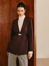 Kemer Detaylı Kahverengi Minimalist Blazer Ceket