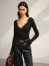 Şık V-Yaka Jarse Üst ile Zarif Dantel Detayı