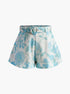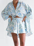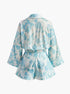 Yaka Çiçek Desenli Kemerli Şort Takımı