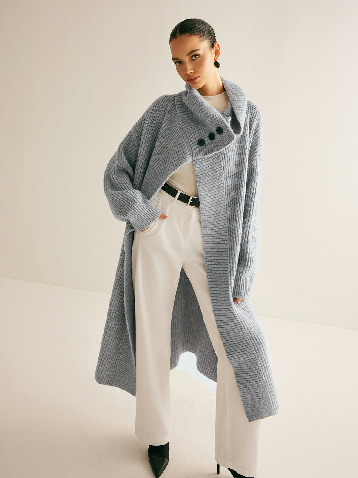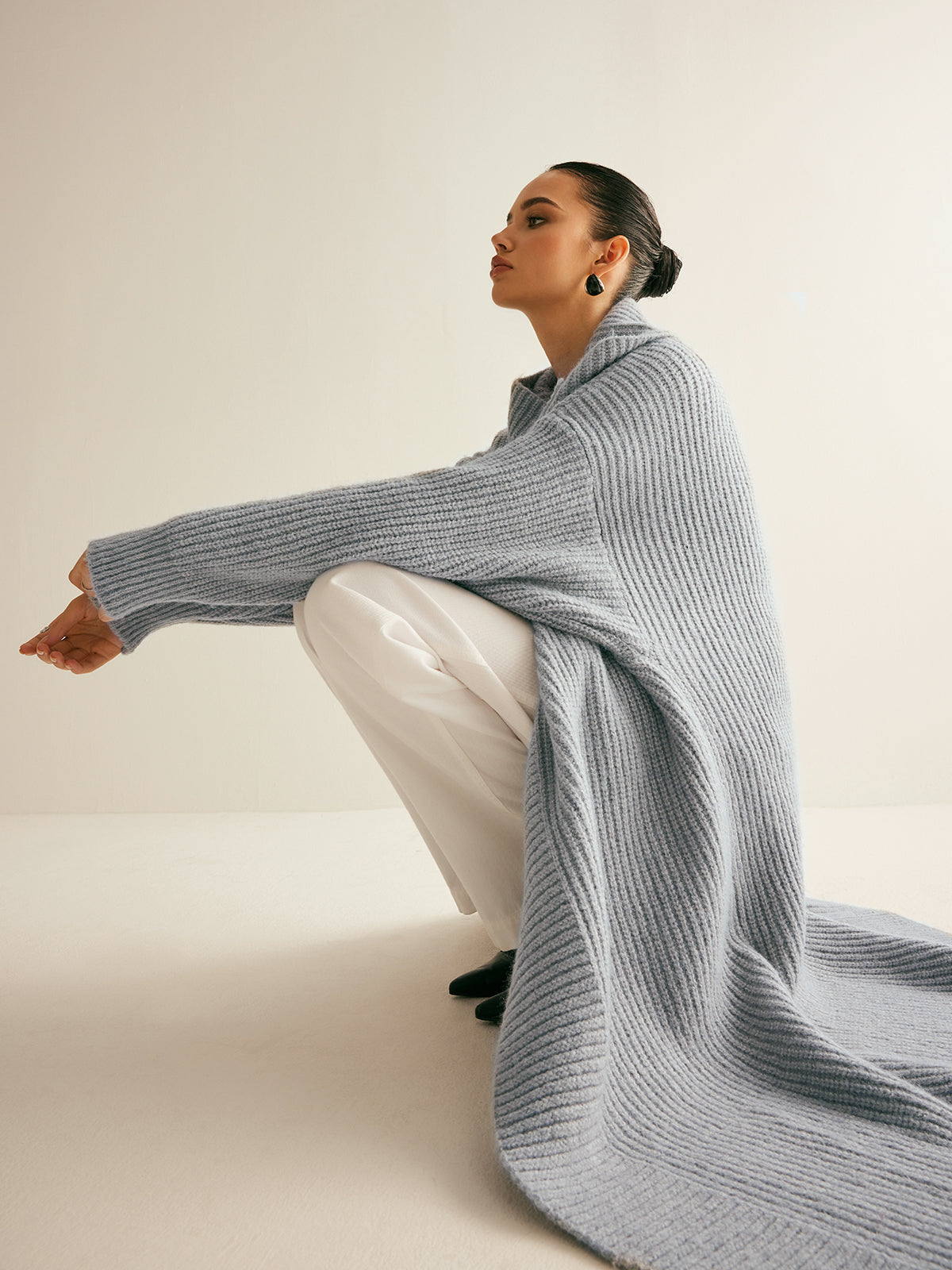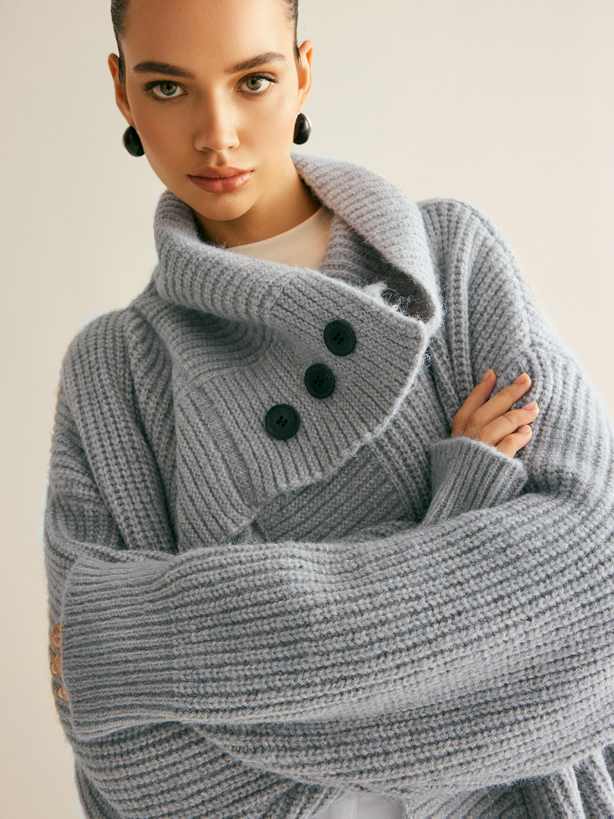 Yaka Fularlı Ribanalı Uzun Hırka