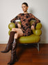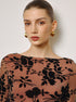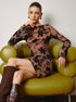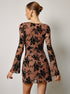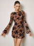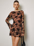Olyssa Yarı Şeffaf Flok Çiçekli Kısa Elbise