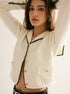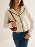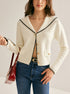 Yelken Yaka Kontrast Uçlu Düğmeli Hırka