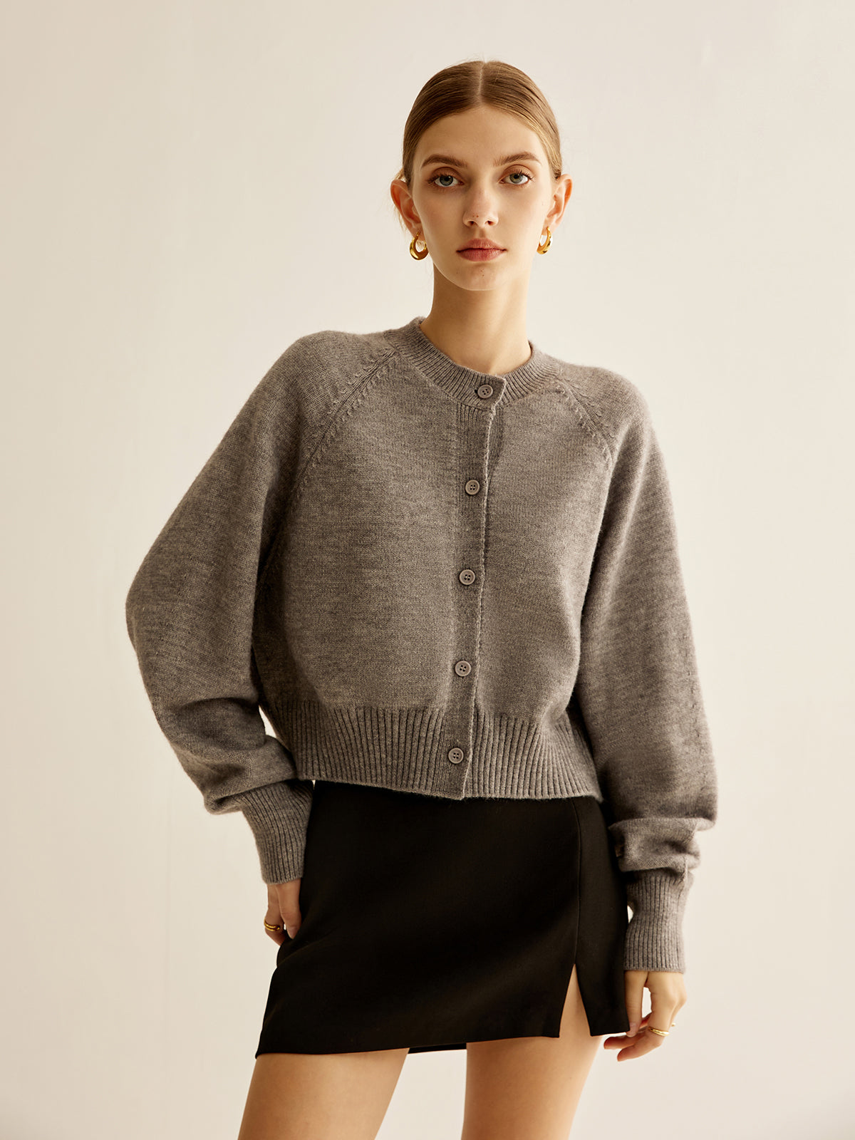 Yuvarlak Yaka Göğüslü Hırka