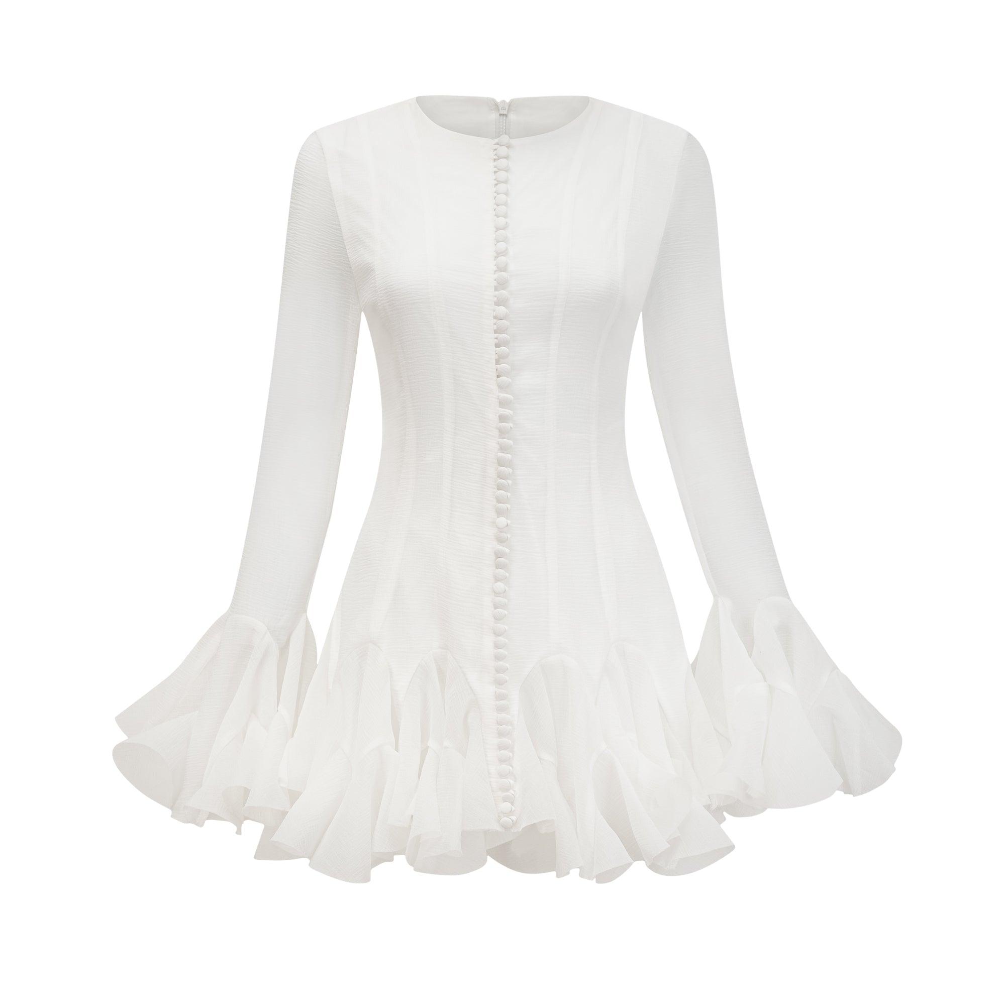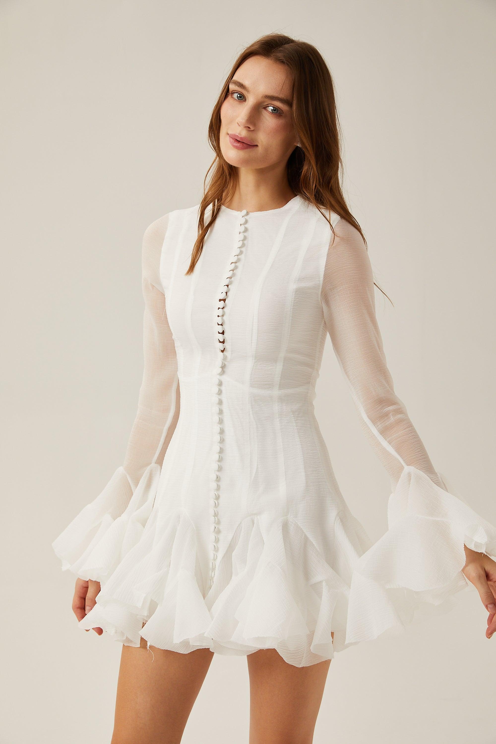 Olyssa Aurora Fırfır Detaylı Beyaz Mini Elbise