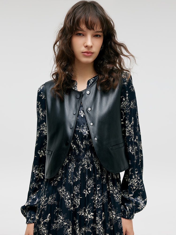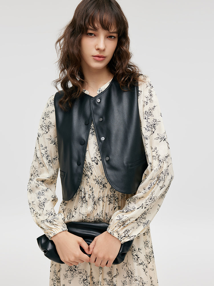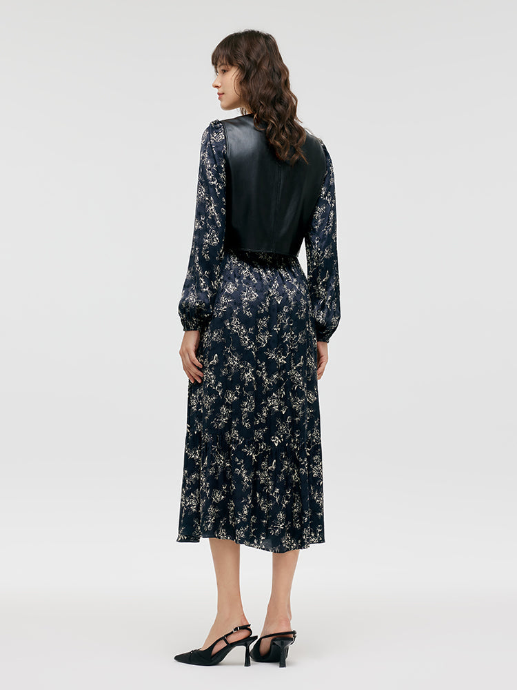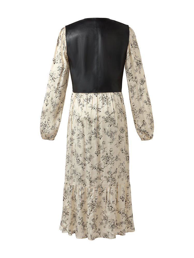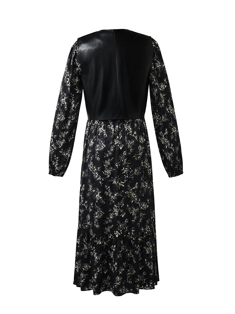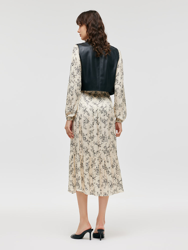 Çevre Dostu Kürk Yelek ve Çiçek Desenli Elbise İkili Takım