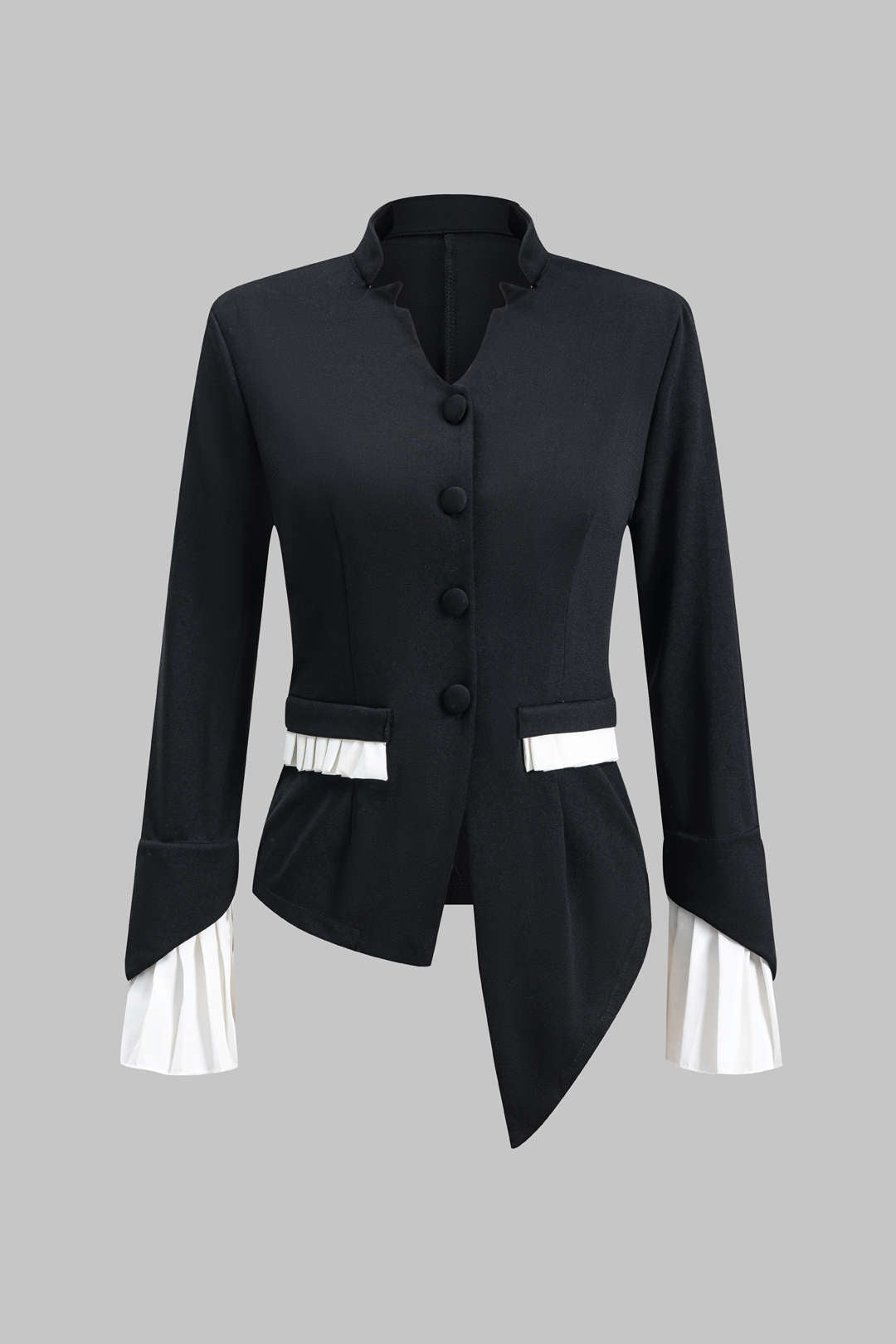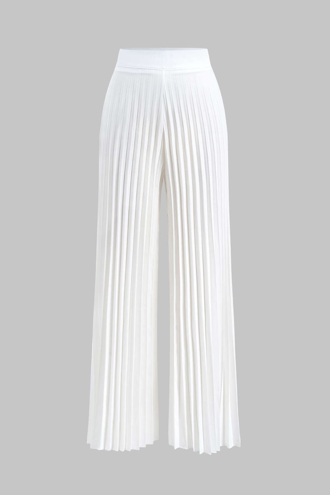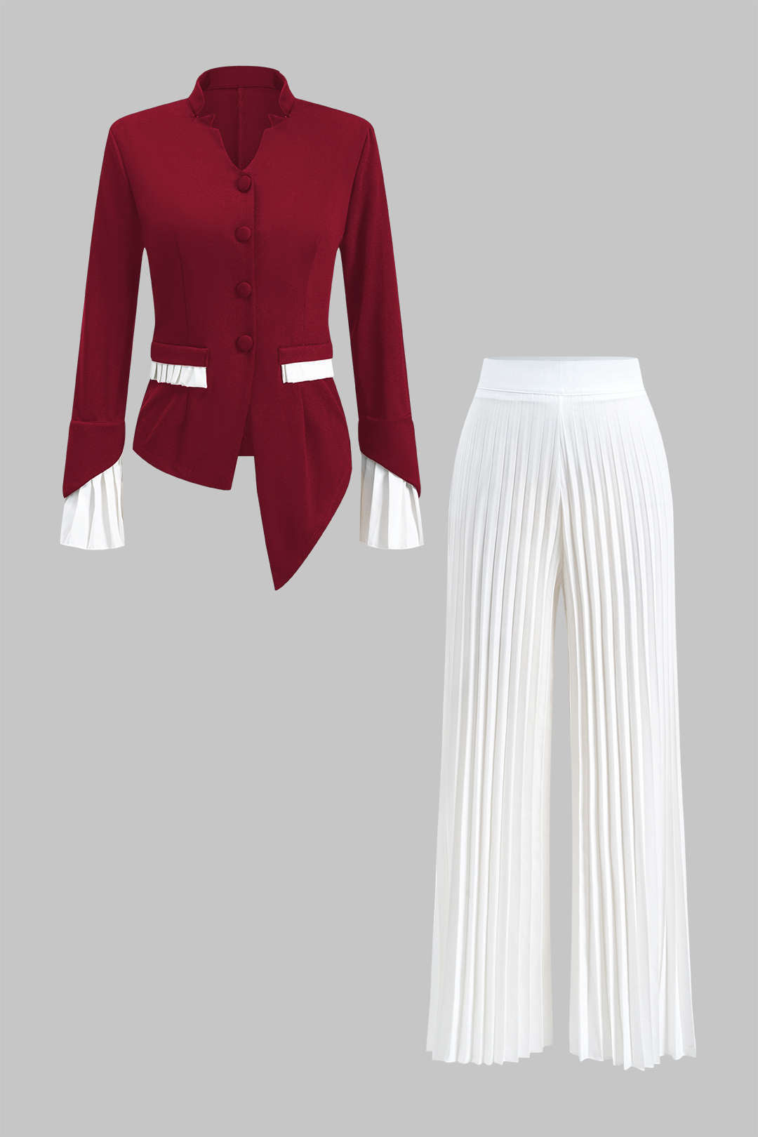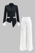 Kontrast Piliseli Düğmeli Cep Uzun Kollu Bluz ve Geniş Paça Pantolon Seti