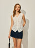 Şık Çiçek Desenli Nakışlı Pamuk Yelek