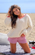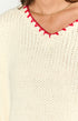 Delvey Cream And Red Contrast Stitch Chunky Knit Sweater