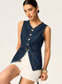 Kot Dar Düğmeli Kolsuz Yelek