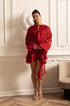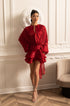 Olyssa Drapeli Uzun Kollu, Mini Etekli ve Büzgülü Bel Detaylı Elbise – Kırmızı