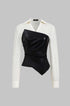 Suni Deri Keten Asimetrik Patchwork Fermuarlı V Yaka Uzun Kollu Gömlek