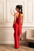 Olyssa 3 Boyutlu Güllü ve Yandan Yırtmaçlı Elbise - Kırmızı