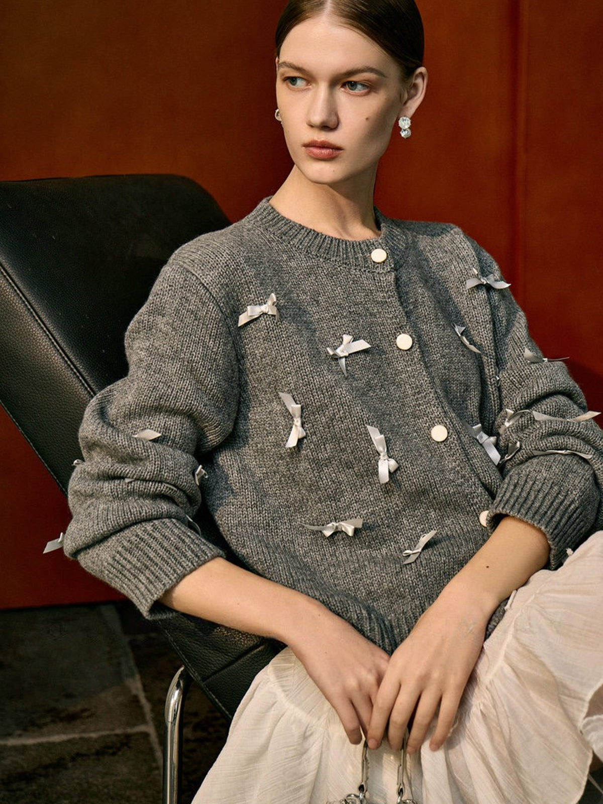 Fiyonk-Dekor Düğmeli Streç Hırka