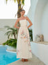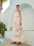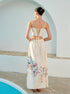 Şık Çiçek Desenli Dantel Bağcıklı Sırt Dekolteli Kolsuz Abiye Elbise