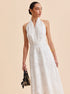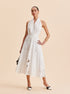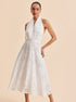 Şık Halter Yaka Göz Detaylı Kemerli Abiye Midi Elbise