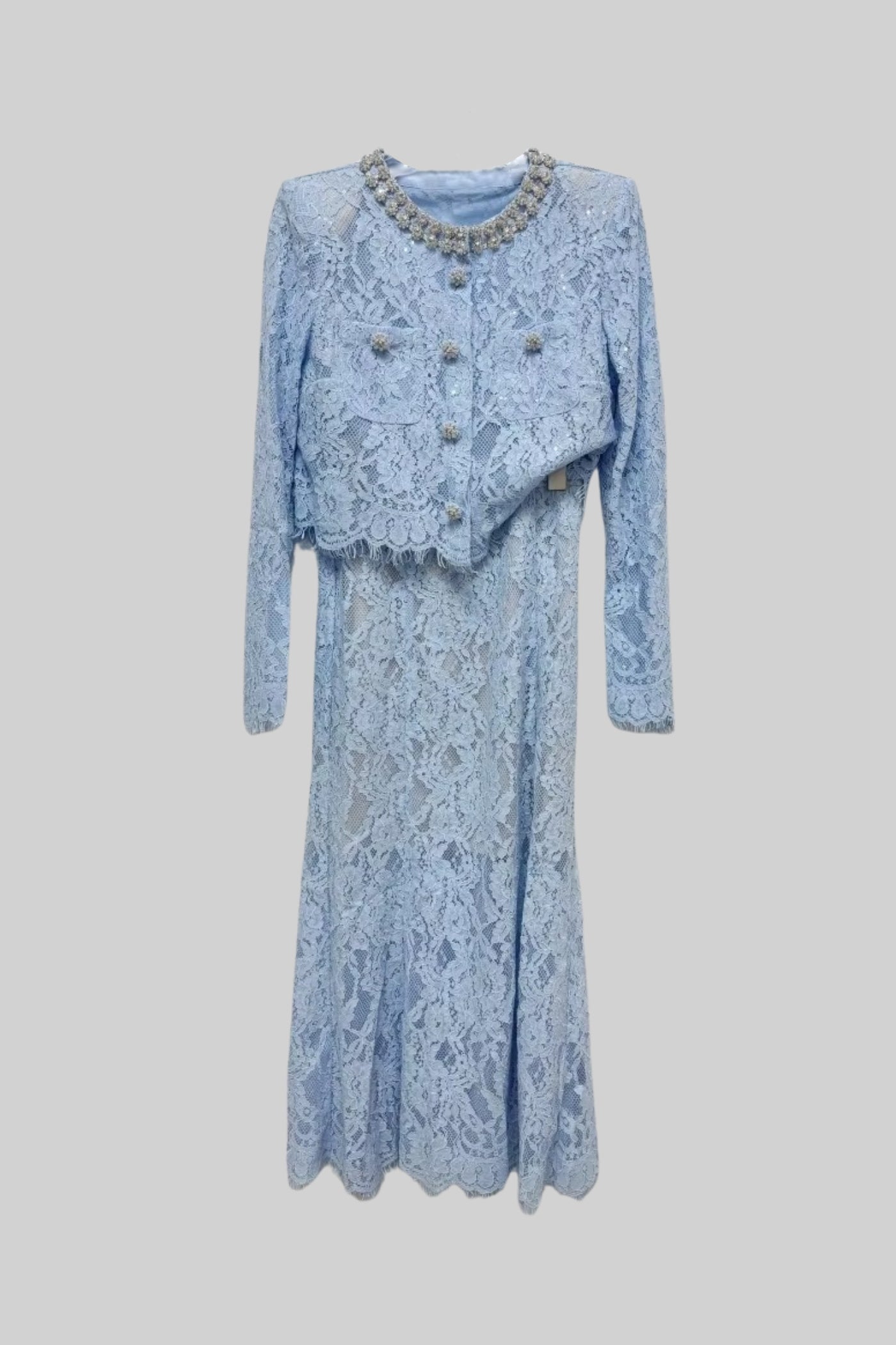 Olyssa Işıltılı Yaka Süslemeli ve Midi Etekli Dantel Takımı