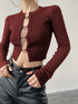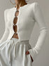 Kesik Bölmeli Boncuk Detaylı Nervürlü Örgü Üst