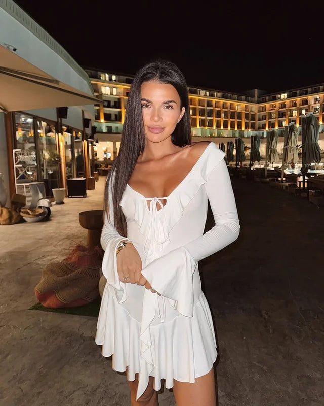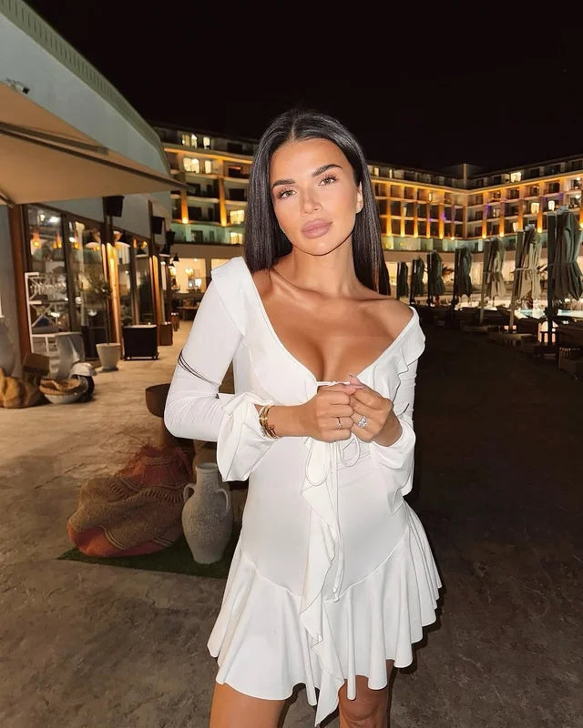 Olyssa Kontrast Fırfır Yaka Mini Elbise