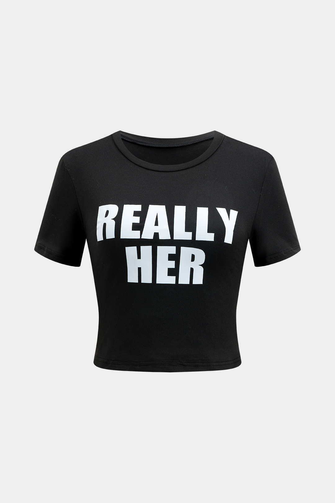 Yazı Baskılı Yuvarlak Yaka Kısa Kol Tişört