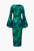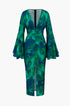 Çiçek Desenli V Yaka Yırtmaçlı Maxi Elbise