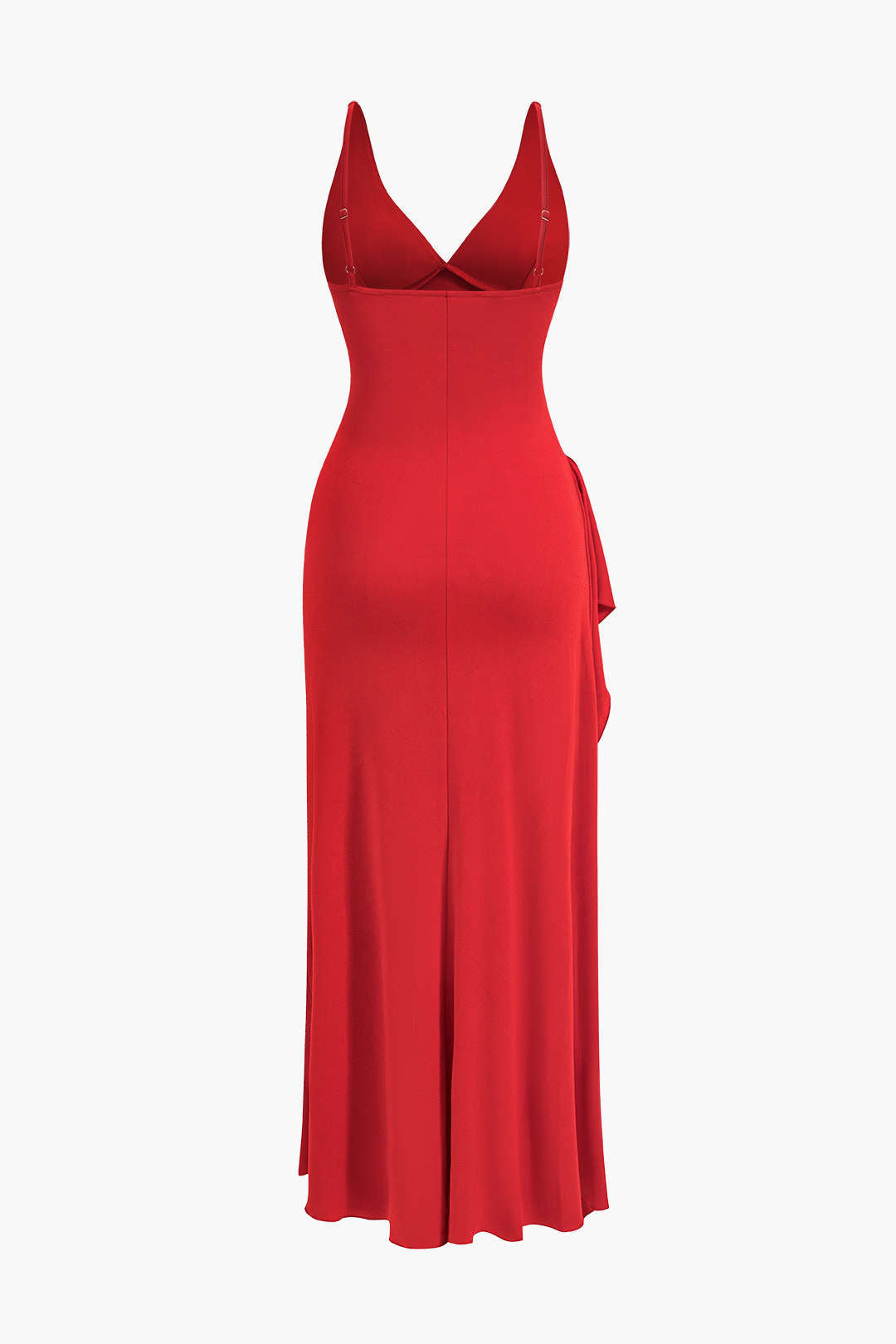 Büzgülü Yırtmaçlı Sırt Geçişli Gece Elbisesi