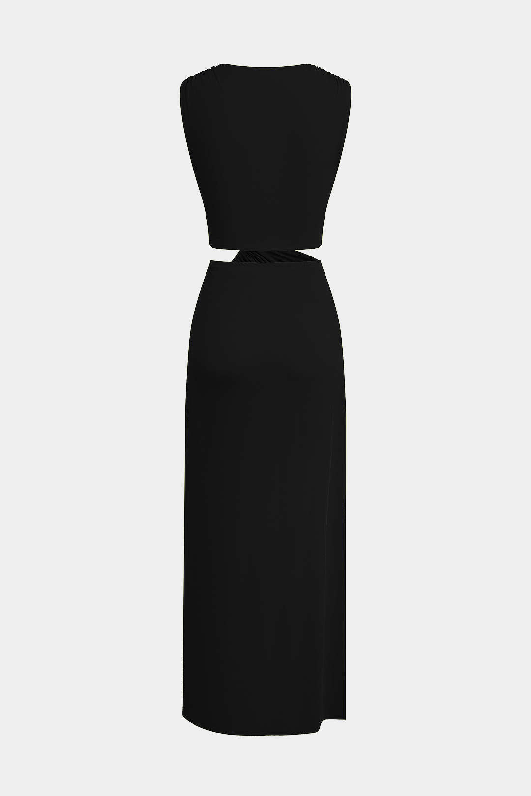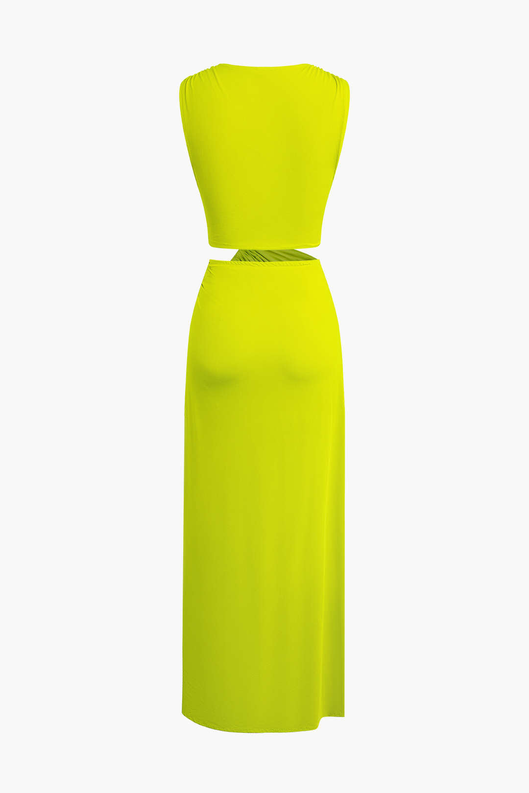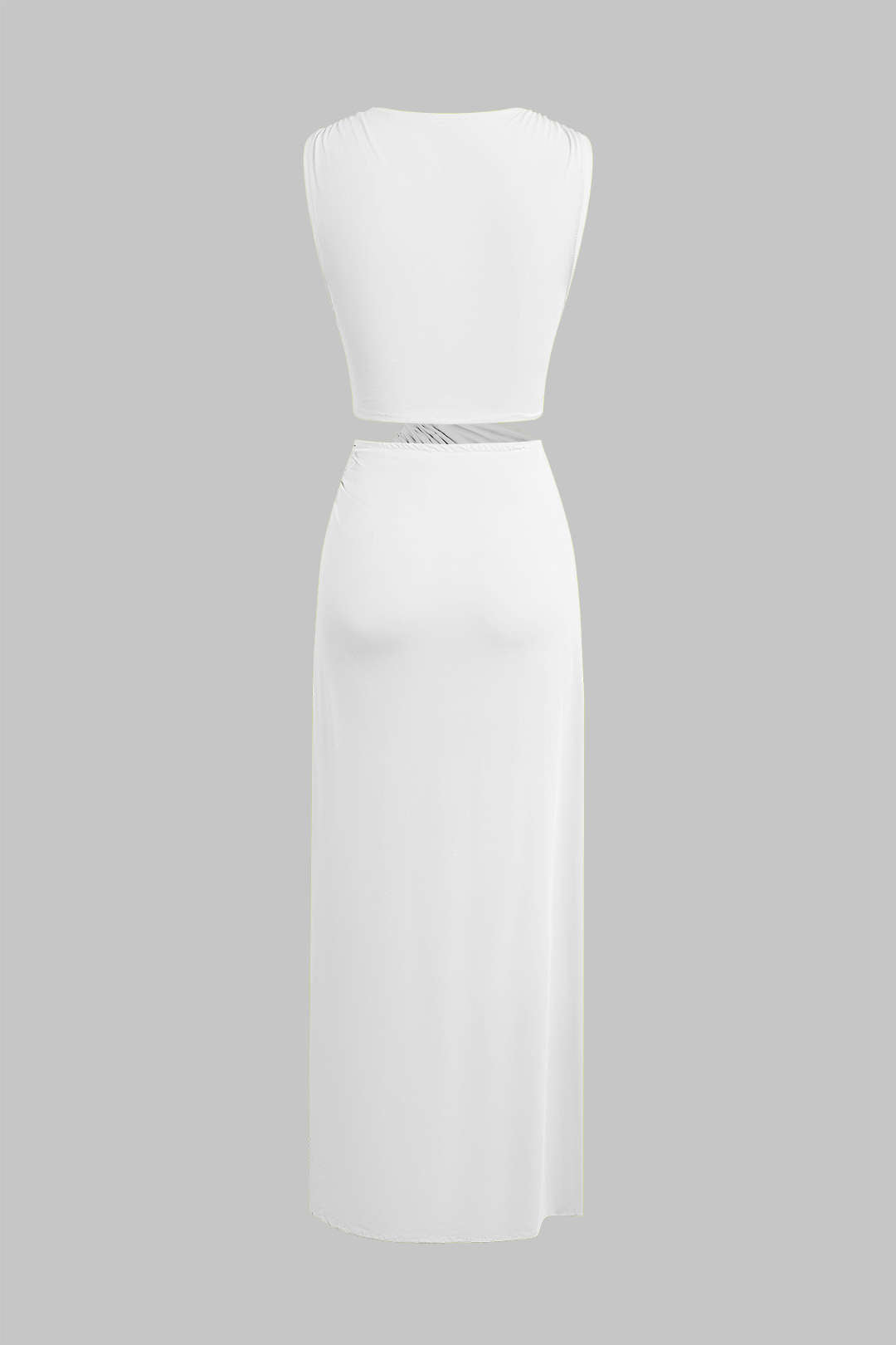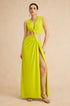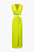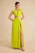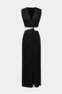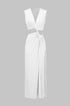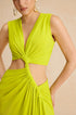 Kesik Detaylı Dönme Bağlama Kolsuz Yırtmaçlı Midi Elbise