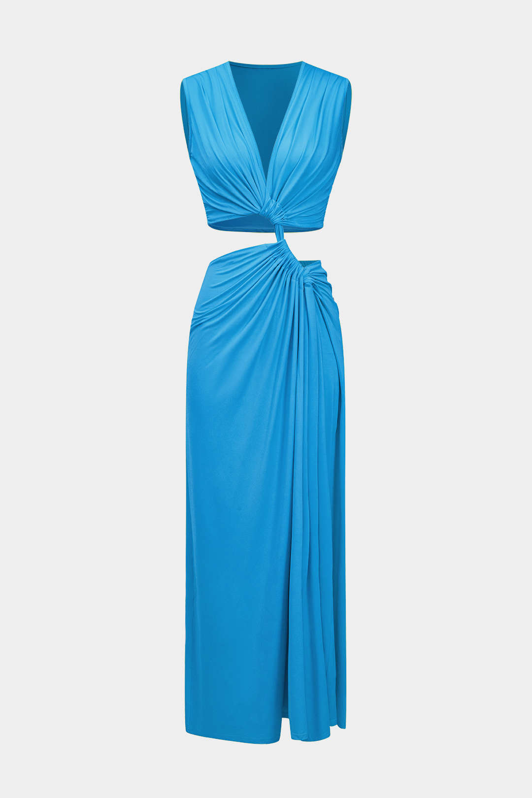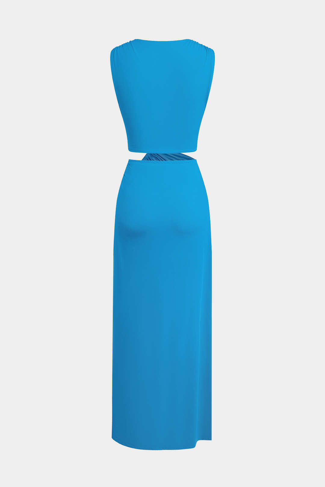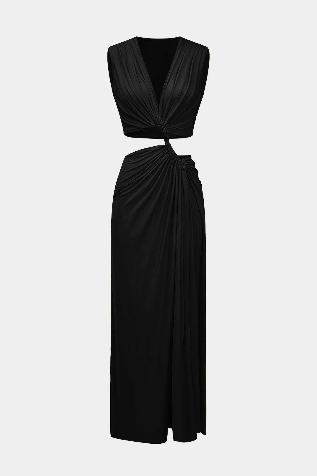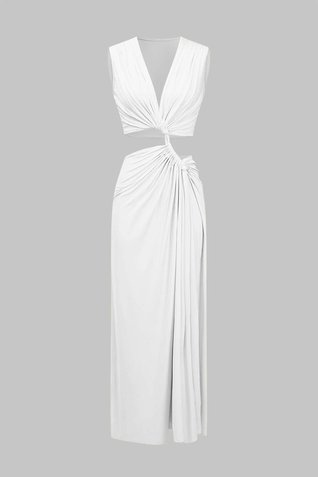 Kesik Detaylı Dönme Bağlama Kolsuz Yırtmaçlı Midi Elbise