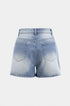 Denim Asimetrik Düğmeli Cep Yırtık Şort