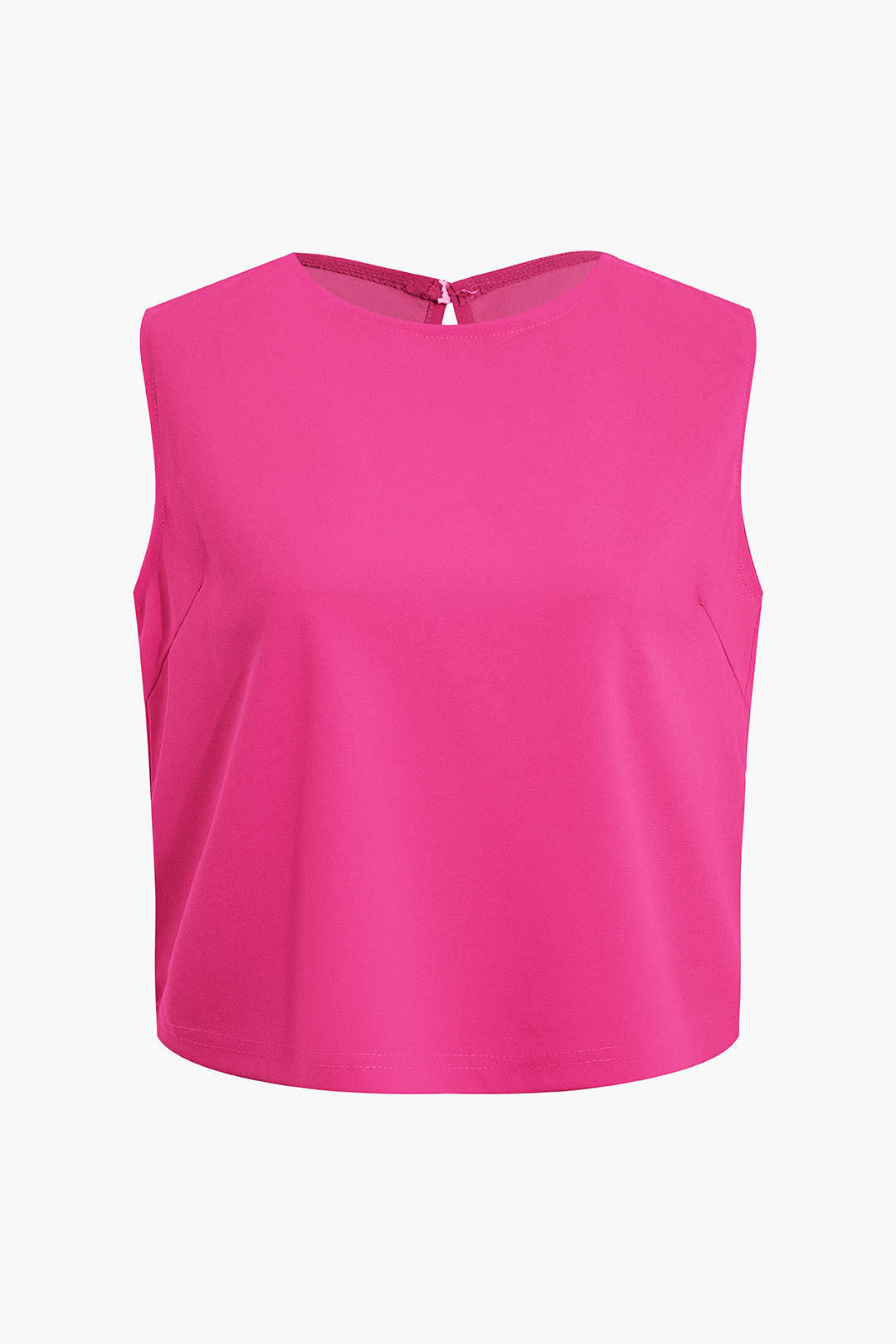 Basic Düz Kolsuz Bluz ve Düz Paça Pantolon Takımı