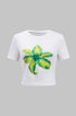 Çiçek Desenli Kısa Kol Tişört