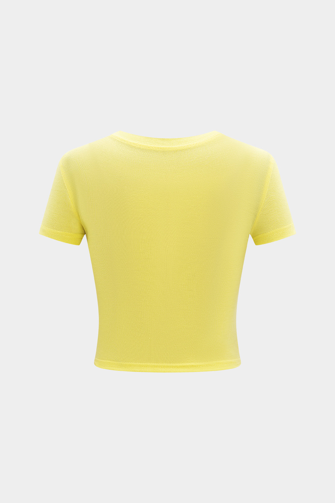 Çiçekli Kontrast Baskılı Yuvarlak Yaka Kısa Kollu Tişört