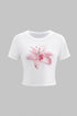 Çiçek Desenli Kısa Kol Tişört