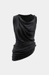 Asimetrik Cowl Yaka Kırışık Tank Top