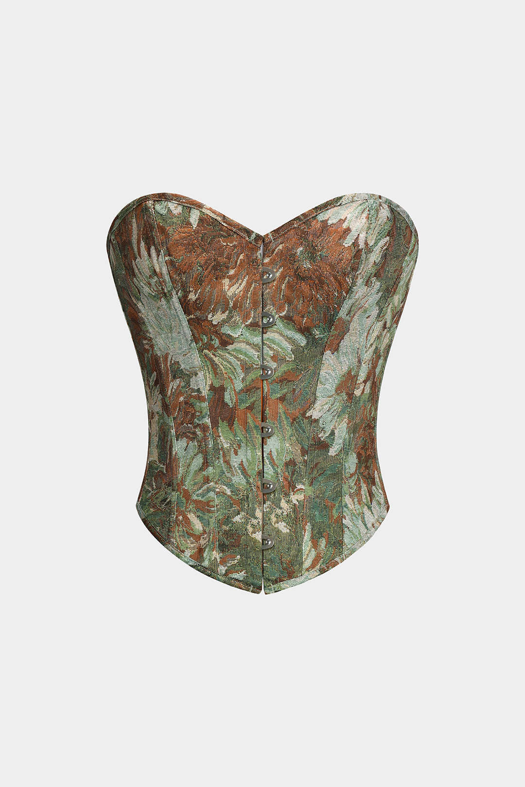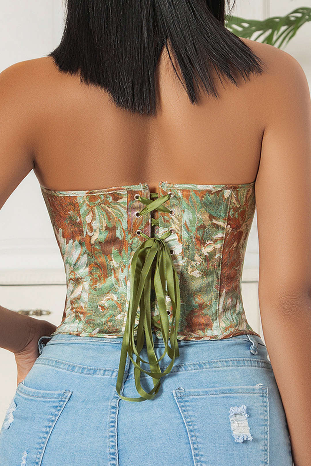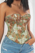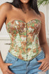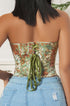 Çiçek Desenli Askısız Bağlama Detaylı Korse Tüp Bluz
