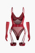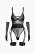 Şeffaf Mesh Kemerli Sırt Dekolteli Bodysuit Eldivenli