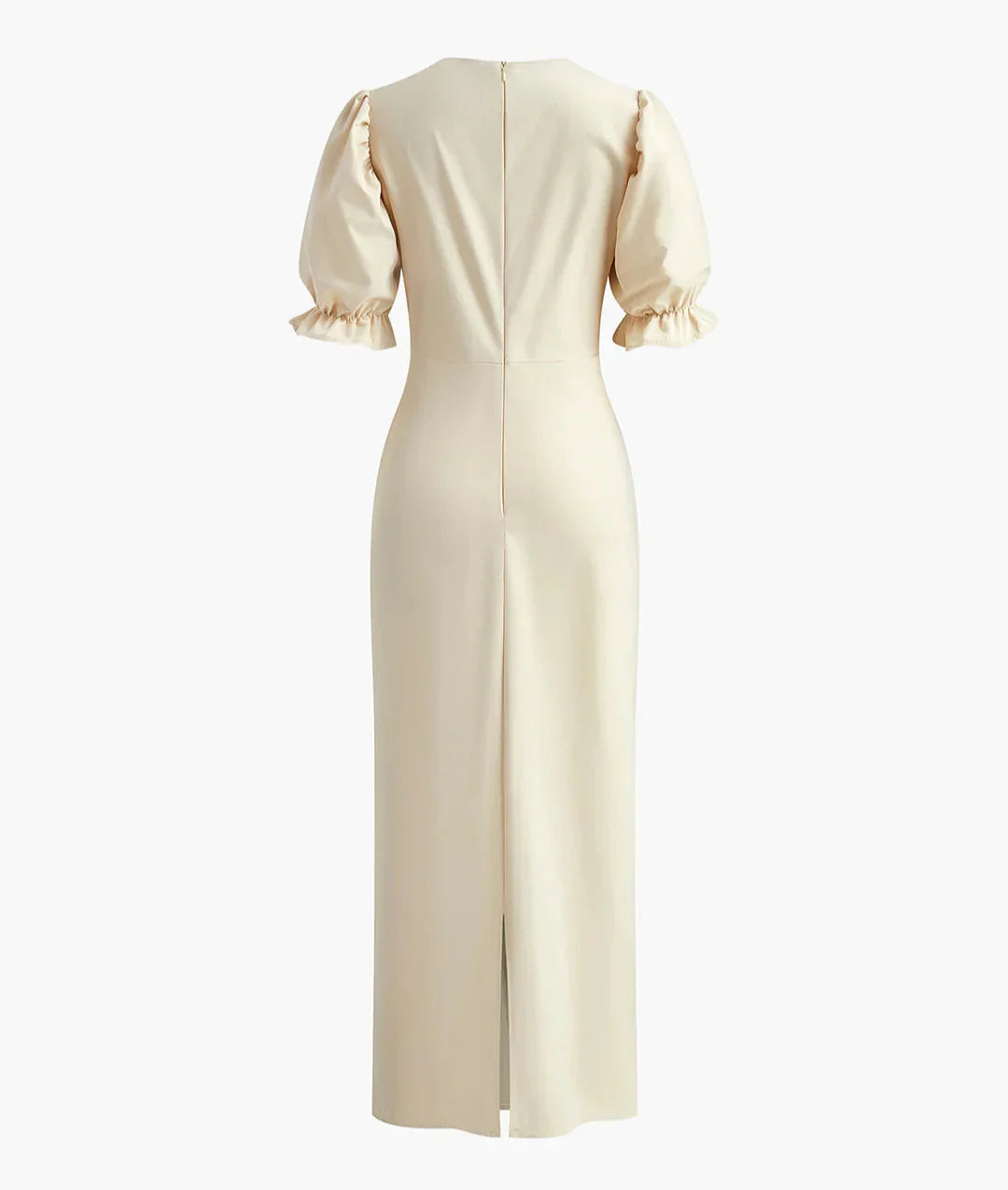 Bu elbise, özel günler ve davetlerde zarafetle öne çıkmak isteyenler için ideal bir seçim sunar. 🤍